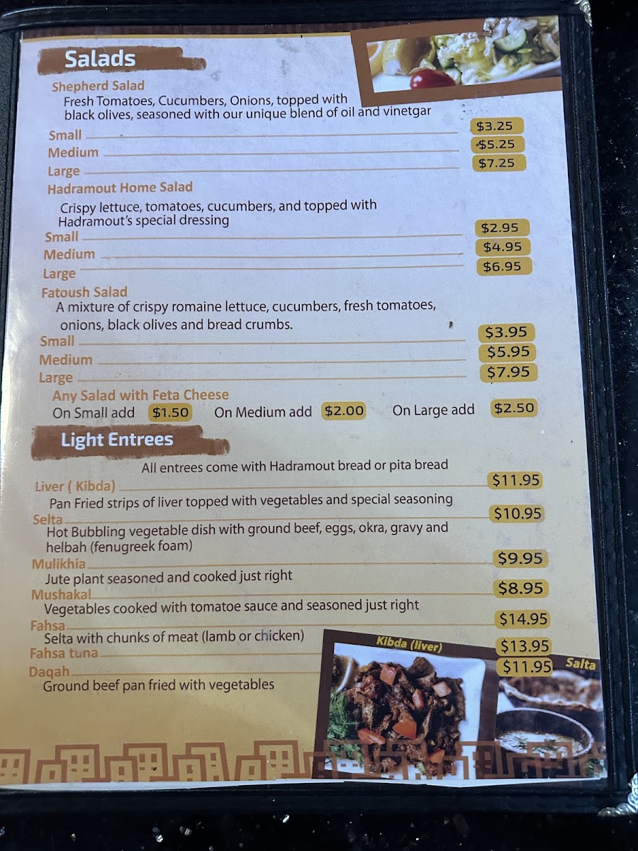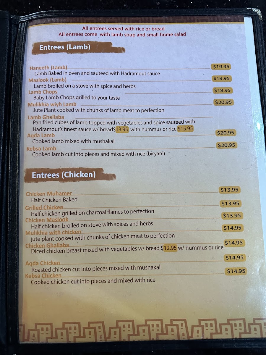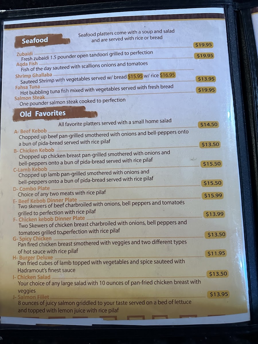 At Hadramout, located at 4030 N Blackstone Ave, Fresno, CA, you'll discover a menu filled with the authentic tastes of the Middle East. The Hadramout Menu offers a rich variety of dishes that celebrate the bold and flavorful spices of the region. Whether you're in the mood for a savory lamb dish, perfectly spiced chicken, or a hearty vegetarian option, there's something for everyone to enjoy. Each dish is crafted with fresh ingredients, bringing together traditional flavors in a way that feels both comforting and exciting. The best part? The menu is designed to cater to all tastes, making it the perfect place for a casual meal with friends or a cozy dinner with family. From flavorful rice dishes to grilled meats and vibrant sides, Hadramout's menu will take you on a culinary journey that’s sure to leave you craving more.